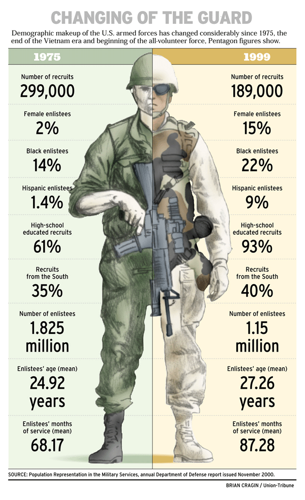 Demographics of the Guard The figure below shows how the demographic of the U.S. armed forces has changed since 1975. Comments