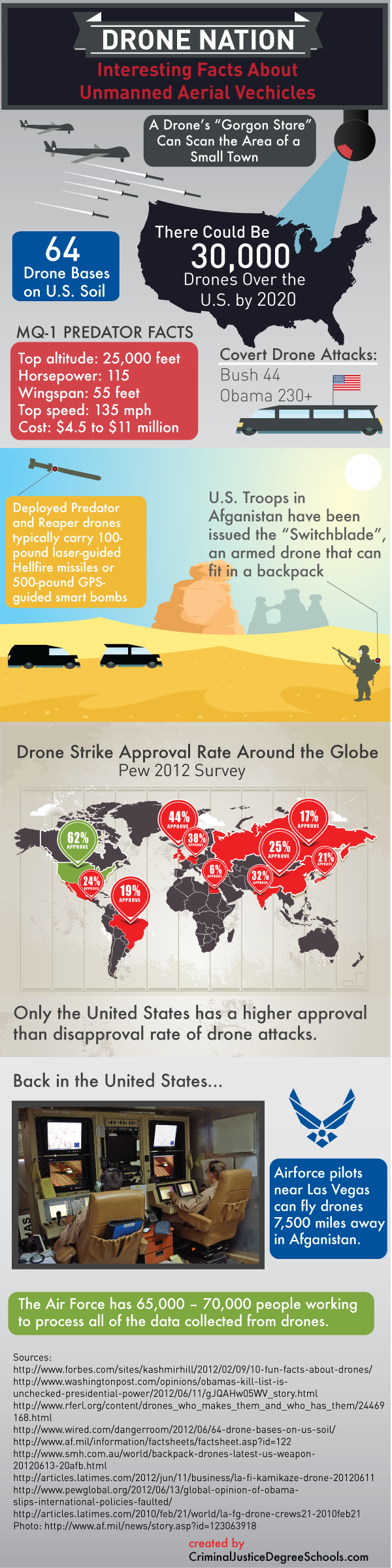 The rise of drones for military attacks on suspected terrorists has received a lot of coverage from the media and many are critical of their use, including foreign political leaders. Are attacks by military drones justified if they successfully eliminate terrorists? This question is currently being debated in Washington and 26 members of Congress recently submitted a critical letter about military drone attacks to the White House. The following infographic provides interesting information that you should know about military drones, also known as UAVs or unmanned aerial vehicles.