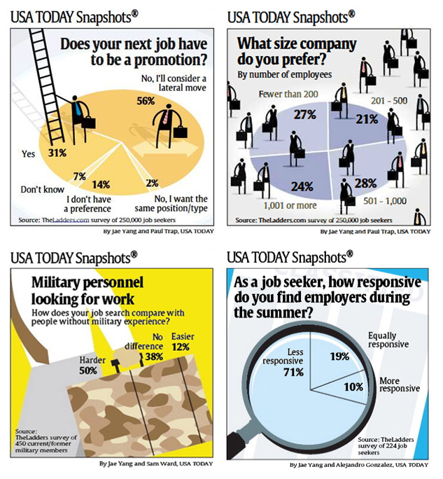 Does your next job have to be a promotion? What size company do you prefer? Military personnel looking for work! As a job seeker, how responsive do you find employers during the summer?