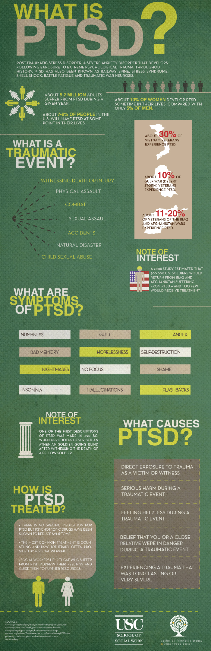 This “What is PTSD?” infographic outlines the symptoms, causes and treatments for the various types of traumatic events, and we hope this serves as a good starting point to spread awareness.