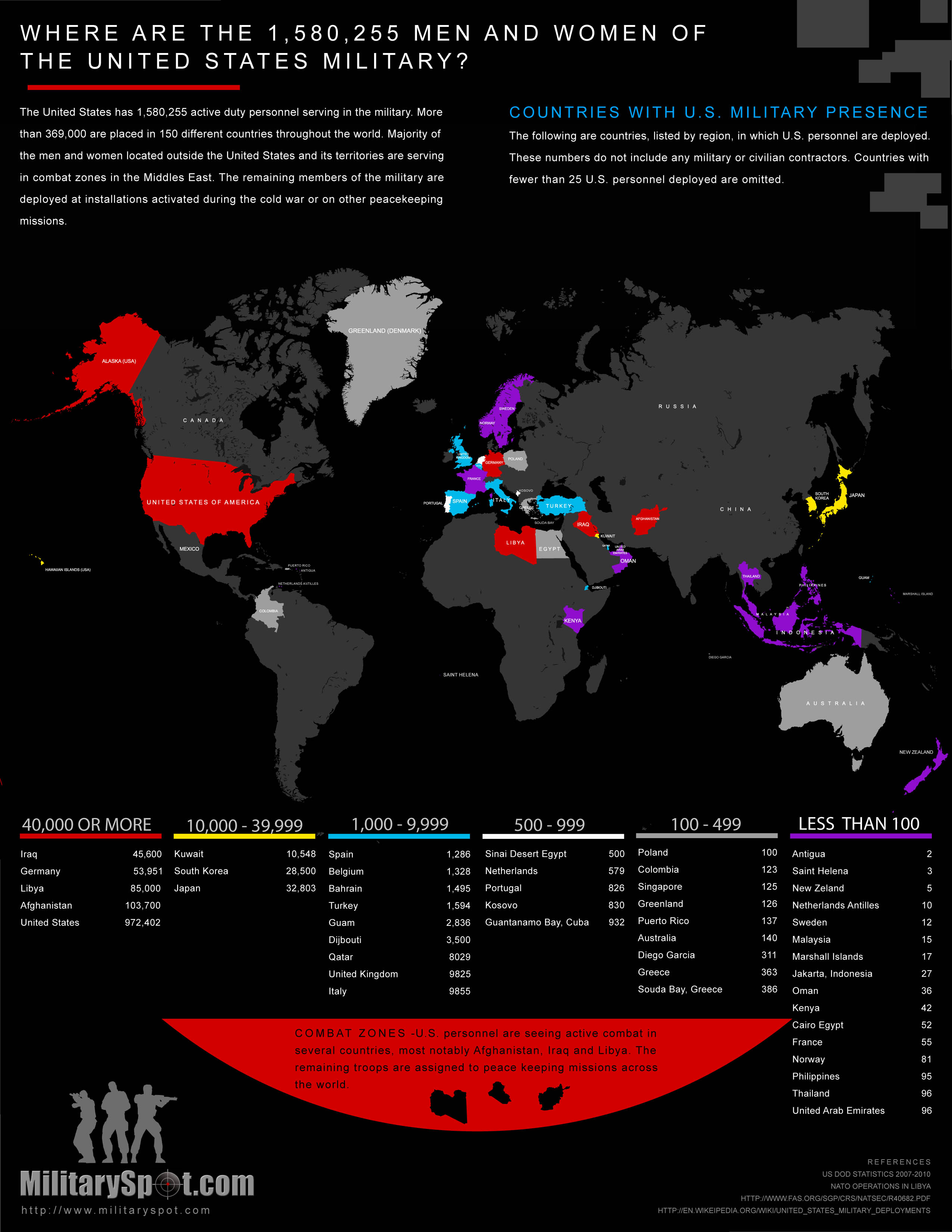 U.S. Military Location The United States Military has active duty personnel serving in 150 different countries. Comments