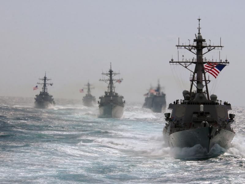 Guided Missile Destroyer USS PorterThe guided missile destroyer USS Porter (DDG 78), right, participates in a pass in review formation during divisional tactics training. (U.S. Navy photo by Lt.j.g. Caleb Swigart RELEASED) 1024 x 768 | 800 x 600 |