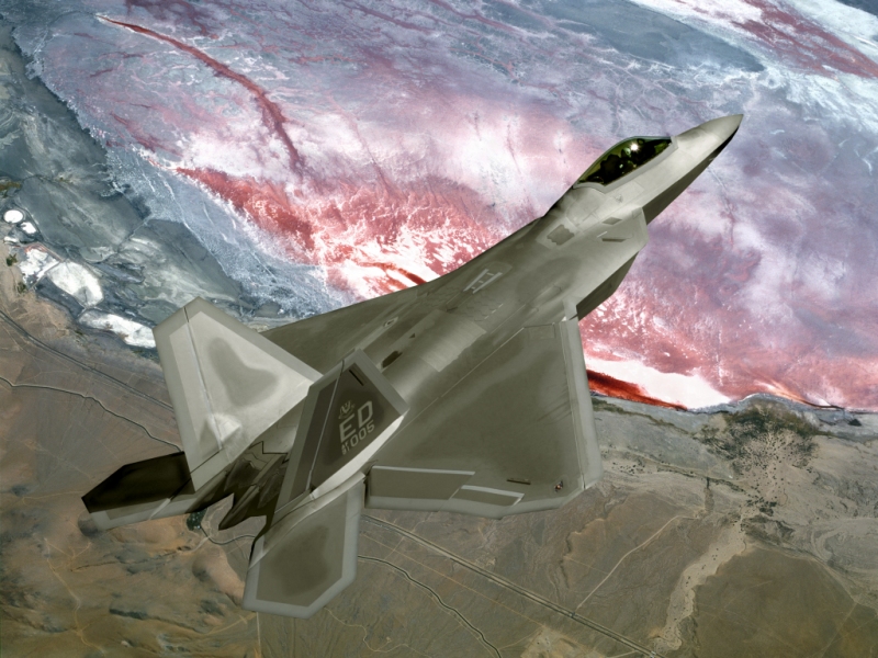 F/A-22 RaptorAn F/A-22 Raptor flies a training mission over California. (U.S. Air Force photo) 1024 x 768 | 800 x 600 |
