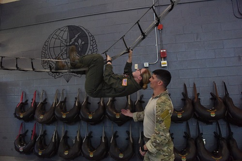 In addition to learning about various careers, the cadets stayed in base lodging, ate in the dining facility, participated in physical training sessions, received incentive flights and engaged in a speed mentoring session. The physical training session featured memorial push-ups in honor of Lt. Col. William Schroeder, who was killed in the line of duty, a year ago to the day.