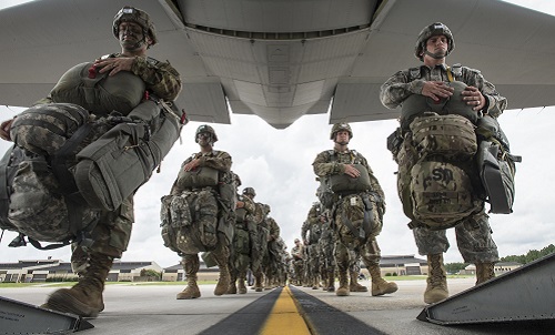 AUGUST 25, 2016, POPE ARMY AIRFIELD, N.C. (AFNS) – With a jump in airdrops, an arriving C-130 Hercules taxies to a large hangar where about 60 Army paratroopers wait to board. Lugging about 100 pounds of gear, the Soldiers quickly line up and load into the aircraft as its four idling engines blow hot gusts over the tarmac.