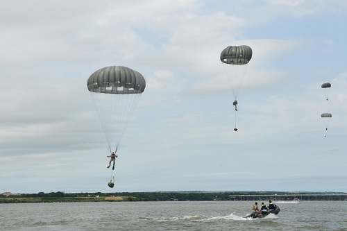 The mission allowed 12 service members to parachute out of a C-130 Hercules from an altitude of 1000 feet into Lake Worth using MC-6 parachutes. Members of the local fire department and Coast Guard Auxiliary provided boat support to aid in parachute and jumper recovery, and provide medevac capabilities if necessary.