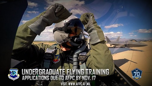 JOINT BASE SAN ANTONIO-RANDOLPH, Texas (AFNS) — Application packages for the next Undergraduate Flying Training selection board are due to the Rated Officer Assignments branch of the Air Force Personnel Center by Nov. 17, 2017.