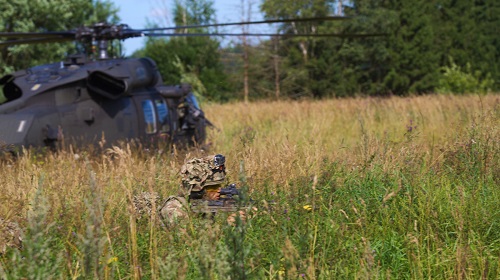 The exercise consisted of US CH-47 Chinooks, escorted by US UH-60L Black Hawks, dropping off infantrymen with the British Army’s 5th Battalion, The Rifles, 20th Armored Brigade on their mission to secure a civilian highway. They were able to practice these specific air maneuvers the day before during a separate exercise that seized an objective and acquired a high value target at Saase Training Area, Estonia.