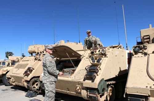 FORT BLISS, Texas (March 17, 2016) – Before Soldiers can evaluate the latest version of the Army’s on-the-move communications network this spring, hundreds of Army tactical vehicles are receiving technological upgrades within the Integration Motor Pool at Fort Bliss, Texas.