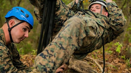 One of the exercises that the course taught the students was how to make a suspension bridge only using rope. These bridges allow Marines to conduct cliff assaults, and move supplies and themselves safely across a river or cavern.