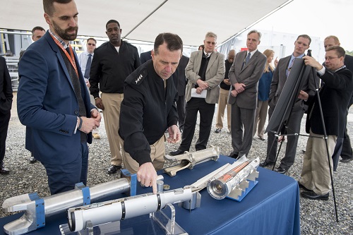 JANUARY 20, 2017, DAHLGREN, Va. (NNS) – Naval Surface Warfare Center, Dahlgren Division (NSWCDD) leaders briefed Chief of Naval Operations Adm. John Richardson on electric weapons and cybersecurity technology during his visit Jan. 18.