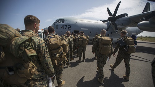 During the training scenario, the C-130 acted as the “slow mover” among the group of fighter jets. The Marines simulated dropping paratroopers at a designated landing zone while the Spanish F-18s provided security above the route. Following the scenario, the Marines refueled the jets to give the Spanish pilots additional training in aerial refueling.