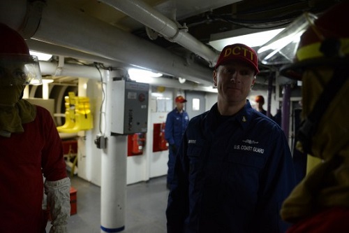 Drills range from ship-wide to very specific tests of individual watchstanders. Even the newest members, straight out of Coast Guard boot camp, are learning skills that could save the rest of the crew in an emergency. Firemen, the cutter’s most junior engineers, stand a security watch that puts them first on scene during machinery casualties.