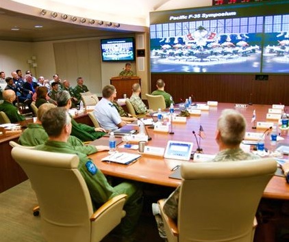 This inaugural Pacific F-35 Symposium featured the largest gathering of fifth-generation warfighters in history. Approximately 91 senior officers and F-35 experts from a variety of organizations participated. Among the organizations represented were U.S. Pacific Command, Air Combat Command, U.S. Air Forces in Europe and Air Forces Africa, Marine Corps Forces Pacific and the Air Force Integration Office.