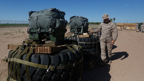 APRIL 4, 2017, MARINE CORPS BASE CAMP PENDLETON, Calif. – Marines with 1st and 2nd Marine Logistics Group incorporated a GPS guided airdrop system training scenario into the Weapons and Training Instructor Course on March 30, 2017, at Marine Corps Air Station Yuma, Ariz. This was the first time this training was conducted during WTI.