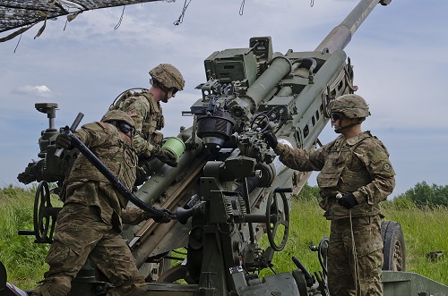 JUNE 8, 2017, BEMOWO PISKE, Poland – “Wet, wet, wet” echoed across the gun line when British reconnaissance forces relayed a fire mission to a U.S. Fires Direction Center during a Fire Support Coordination Exercise at Land Forces Field Training Center, June 6, 2017.