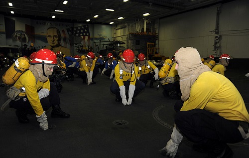 OCTOBER 28, 2016, Arabian Gulf (NNS) – Aboard USS Dwight D. Eisenhower (CVN 69) (Ike), (GQ) general quarters training is held every two weeks to ensure mission readiness in the event of a casualty scenario, and it all begins with putting the ship in the safest material condition possible.