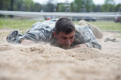 Physical strengths are challenged by a 90-foot ladder called the “Confidence Climb”, a rope and platform obstacle called “The Tough One”, and an upside-down V-structure known as “The Weaver”. The Weaver requires Soldiers to climb over one board and under the next. Other obstacles include the belly crawl, the low belly over, the inverted wall, the high step over, the swing stop jump and the six vault.