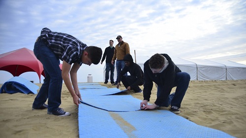 FEBRUARY 17, 2017, NORFOLK (NNS) – Sailors aboard aircraft carrier USS George Washington (CVN 73) worked together with other Sailors to set up the 25th anniversary of the Polar Plunge 2017 Special Olympics event on the waterfront in Virginia Beach, Virginia, Feb. 2.