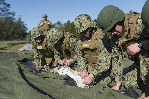 NMCB 11 Sailors have trained with other forces previously. In April 2015, Seabees from NMCB 11, Marine Wing Support Squadron 374 (MWSS-374), and Marine Explosive Ordnance Disposal (EOD) conducted an ADR exercise aboard a CENTCOM Forward Operating Site.