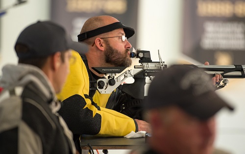 For air rifle prone SH2 competition, Navy veteran Petty Officer 3rd Class Henry Sawyer netted gold with 207.7; Air Force veteran Master Sgt. Jesse Graham captured silver, with 201; and Air Force Staff Sgt. Sebastiana Lopez-Arellano took home the bronze, with a 178 score.