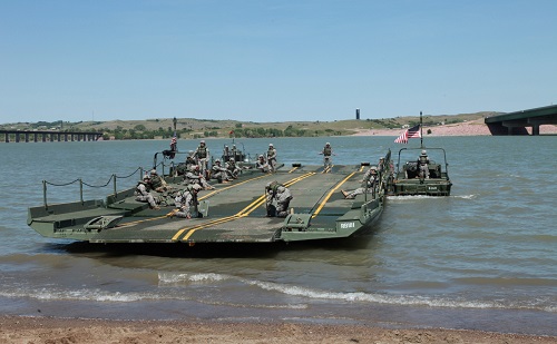 The river crossing signals the start of the two-week exercise hosted every June in the Black Hills of South Dakota, where units traveling from the eastern United States have the opportunity to experience float bridge operations.