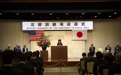 The ceremony honored the return of approximately 9,852 acres of the Northern Training Area, which represents a 17 percent reduction in U.S.-administered land on the main island of Okinawa, the single largest land return on Okinawa since 1972.