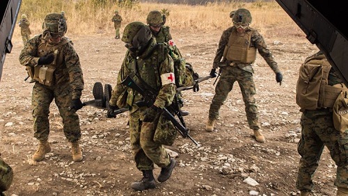 During the exercise, both nations’ forces familiarized themselves with each other’s aviation platforms, training techniques and execution of various mission sets. As the aircraft hovered above the ground, both nations forces fast roped safely to the ground from each other’s platforms. Additionally, the bilateral forces conducted simulated casualty evacuation drills via MV-22B Osprey. Both drills increased combined readiness to events such as natural disaster or crises where an agile and adaptable force is required.