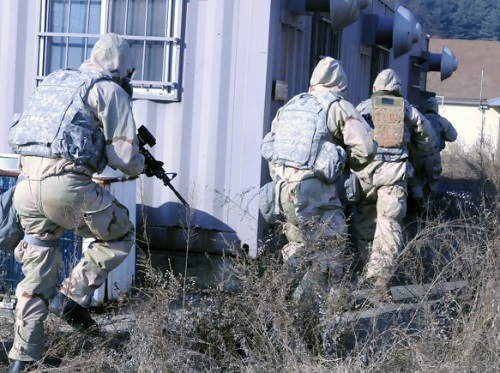 CAMP STANLEY, Republic of Korea (March 18, 2016) – Soldiers entered the dark, cold, damp building to find chemical and biological weapons. Their response was crucial to the mission ahead. They would check specimens from every crevice because what was found in the building would be needed in preparing a case against war crimes.