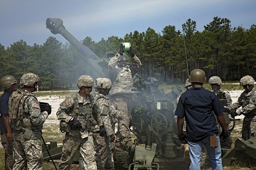 AUGUST 8, 2016, PICATINNY ARSENAL, N.J. – Working with Picatinny Arsenal, Vermont and Massachusetts National Guard Soldiers fired live rounds with new M777A2 and M119A3 howitzers at Joint Base McGuire-Dix on July 27.