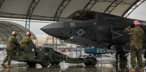 This signified the first time the squadron loaded ordnance onto a running F-35B Lightning II aircraft at the air station in order to prepare for real-world scenarios.
