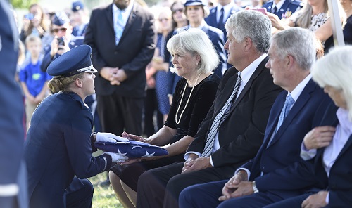 After the passing of the bill, several of the female aviators proudly flew the burial flag during their missions. They documented the flag’s travels in a journal read during the memorial service.